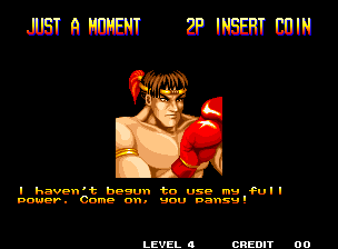 점프가 낮고 필살기가 대체적으로 성능이 좋아서 어느 정도 격투 게임의 센스가 있으면 얼마간의 연습으로 충분히 클리어를 할 수 있었다. 당연히 CPU 캐릭터들의 패턴은 미리 알고 있어야 한다.