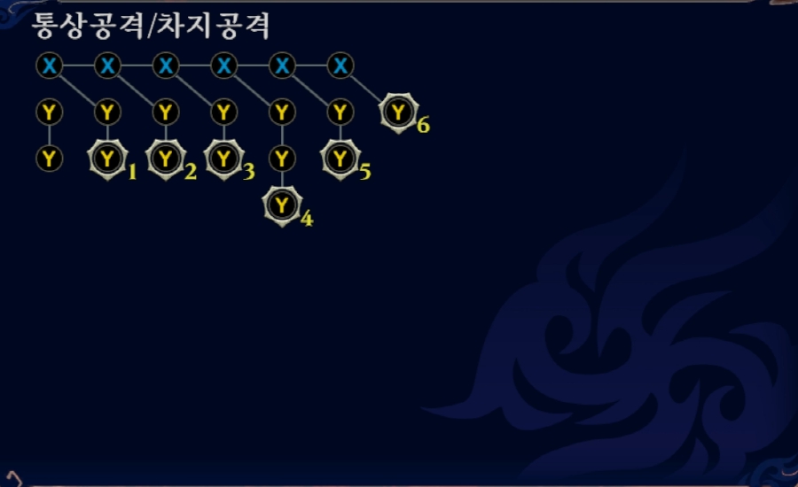 | 1. 불굴의 수호 ▶체력 50% 이하일 때 방어력 +200% 2. 악래재래 – 유니크 무기 ▶체력 50% 이하일 때 공격력 +100% ▶적의 공격을 받으면 3초간 무적 상태가 됨 |
