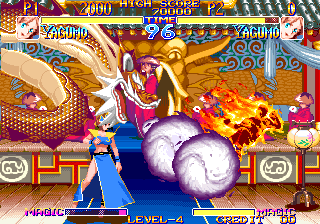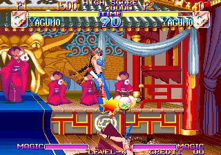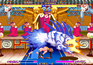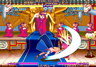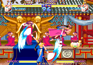 그리고 야쿠모의 부채는 절대로 손에서 놓치질 않는다. 무기 던지기를 사용하더라도 항상 부채를 들고 있는 특징이 있다. 그리고 <지라이아>와는 다르게 무기를 던지고 줍지 않아도 다시 던질 수 있다. 그래서 무기 던지기를 마치 공중 장풍처럼 사용할 수 있다는 것이 야쿠모의 엄청난 장점이다. 모든 동작은 춤을 연상시키는 동작들이지만 보기와는 다르게 리치가 그리 길지는 않아서 기본기 싸움에서는 답답함을 느끼게 되는 경우가 많다. 쓸만한 기본기로는 앉아 약 중 베기가 쓰기 좋다. 근접 전에서 약 중베기를 자주 써주자.